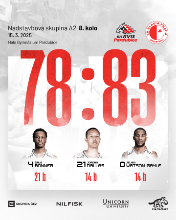 Slavia vstoupila do utkání s obrovským odhodláním a od úvodních minut bylo vidět, že hráči bojují o každý míč. Během druhé čtvrtiny jsme si vypracovali až desetibodové vedení, ale Pardubice se nevzdaly a otočily skóre. Tentokrát jsme však nesložili zbraně – závěr utkání jsme zvládli skvěle a těsnou koncovku dotáhli do vítězného konce!