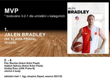 1. Jalen Bradely (SK Slavia Praha) 21,0 b.