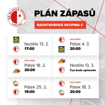 Tak už víme s kým a kde budeme hrát dalších šest soutěžních utkání. Nadstavbová skupina 1.-6. místo byla rozlosována a už se nemůže dočkat na měření sil s kluby ze skupiny Východ, kdy se postupně potkáme s BK Snakes Ostrava, Tury ze Svitav a s BC Nový Jičín. První utkání nás čeká již příští týden v neděli 13. února, kdy vycestujeme do Ostravy. V Edenu odehrajeme v únoru pouze jeden zápas, představíme se v tradičním termínu v pátek 18.2. kdy od 20:00 přivítáme tým Tuři Svitavy, který vyhrál skupinu východ. Držte nám palce v naší cestě za postupem a těšíme se na skvělou atmosféru v domácích zápasech v Edenu.