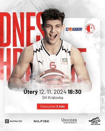 Dnes se náš tým představí v utkání 3. kola Českého poháru proti týmu CZ.ACADEMY, účastníkovi 1. ligy. Tento soupeř letos ukazuje skvělou formu s pěti výhrami a dvěma porážkami, a tak nás čeká rozhodně zajímavý souboj. Utkání se odehraje dnes v 18:30 ve sportovní hale Královka.