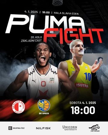 V Edenu nás čeká další velká basketbalová výzva! Již tuto sobotu 4. ledna od 18:00 přivítáme tým BK Opava, který patří mezi tradiční špičku české ligy. Tento zápas bude mít speciální atmosféru, protože poprvé se na palubovce v Edenu střetnou dva týmy oblékající značku PUMA, která je oficiálním partnerem pro oblékání hráčů jak Slavie, tak Opavy.